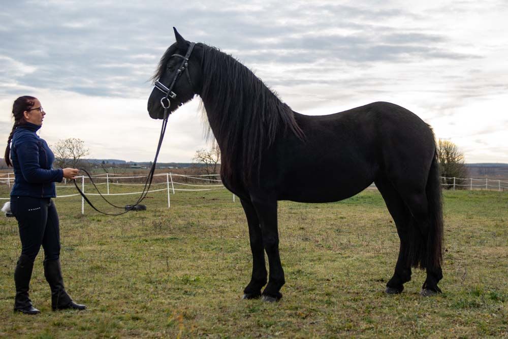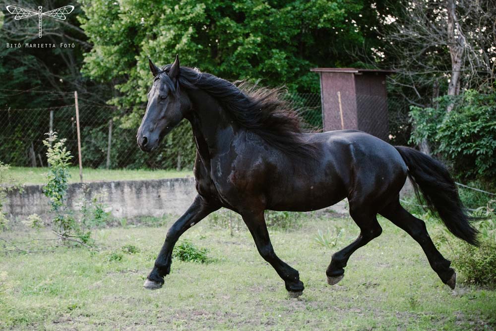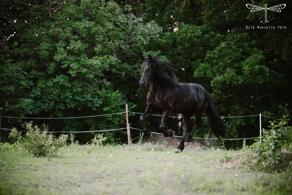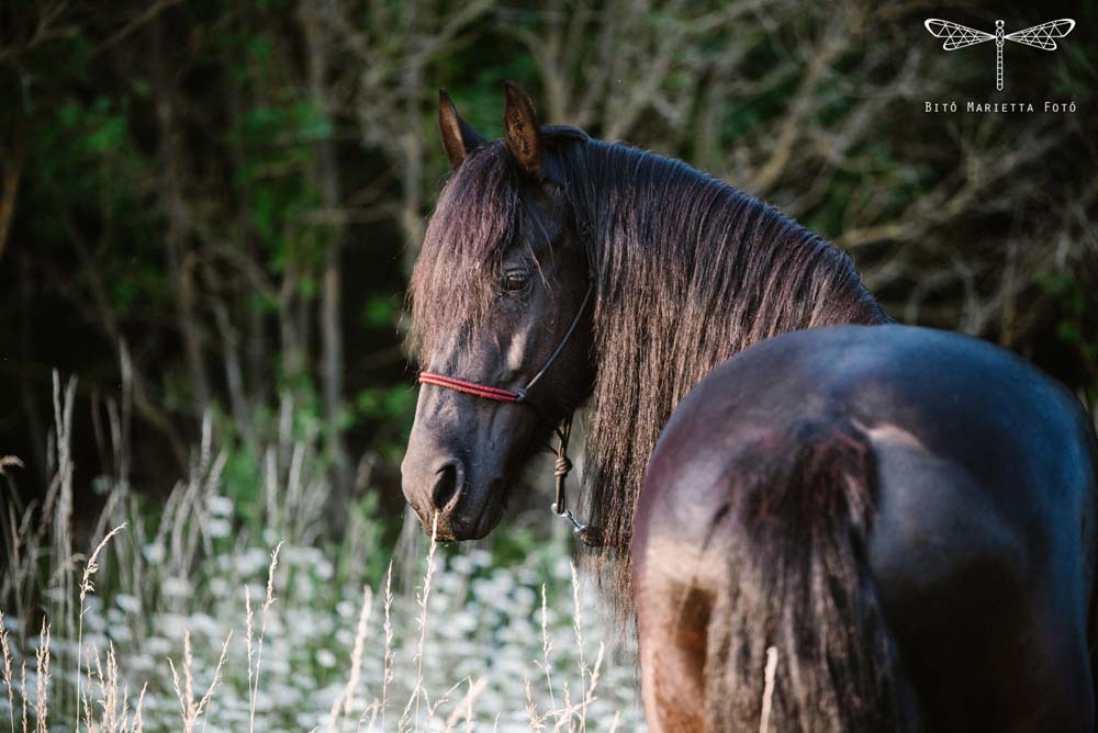 Angyal impozáns megjelenésével, sötét szőrével és hullámos sörényével igazi látványosság a lovardában. Sajátos mozgáskultúrája különleges élményt nyújt a tapasztaltabb lovasok számára, akik készen állnak a finomabb jelzések és a precízebb lovaglás megtanulására. Angyal dekoratív megjelenése okán tapasztalt fotómodell, élvezi a fotózásokat, ahol rendkívül nyugodt és együttműködő. Kedves, jóindulatú kanca, aki ideális társ a földi munka alapjainak elsajátításában.